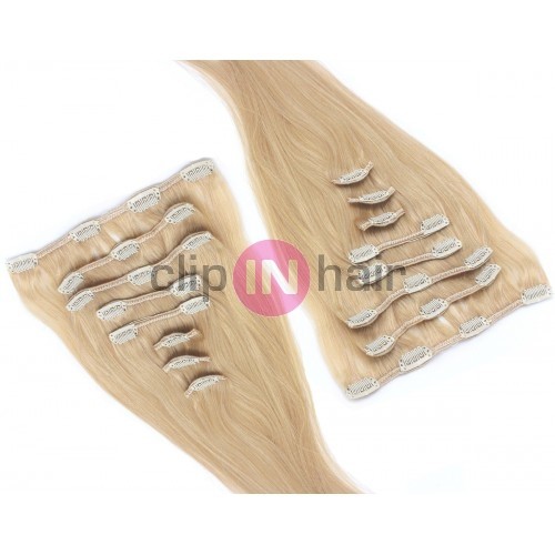 Clip in maxi sada k prodloužení a zahuštění vlasů v pohodlí domova. 43 centimetrů dlouhé vlasy v celkové hustotě 140 gramů.