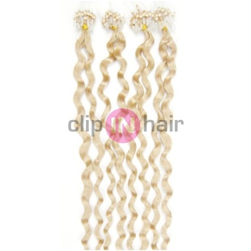 Kudrnaté prameny 100% lidských vlasů k prodloužení a zahuštění metodou Micro Ring. Již připraveny k aplikaci.